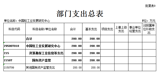 3. 部门支出总表,其他国有资产监管支出200万元,其中人员经费177万元,公用经费23万元。