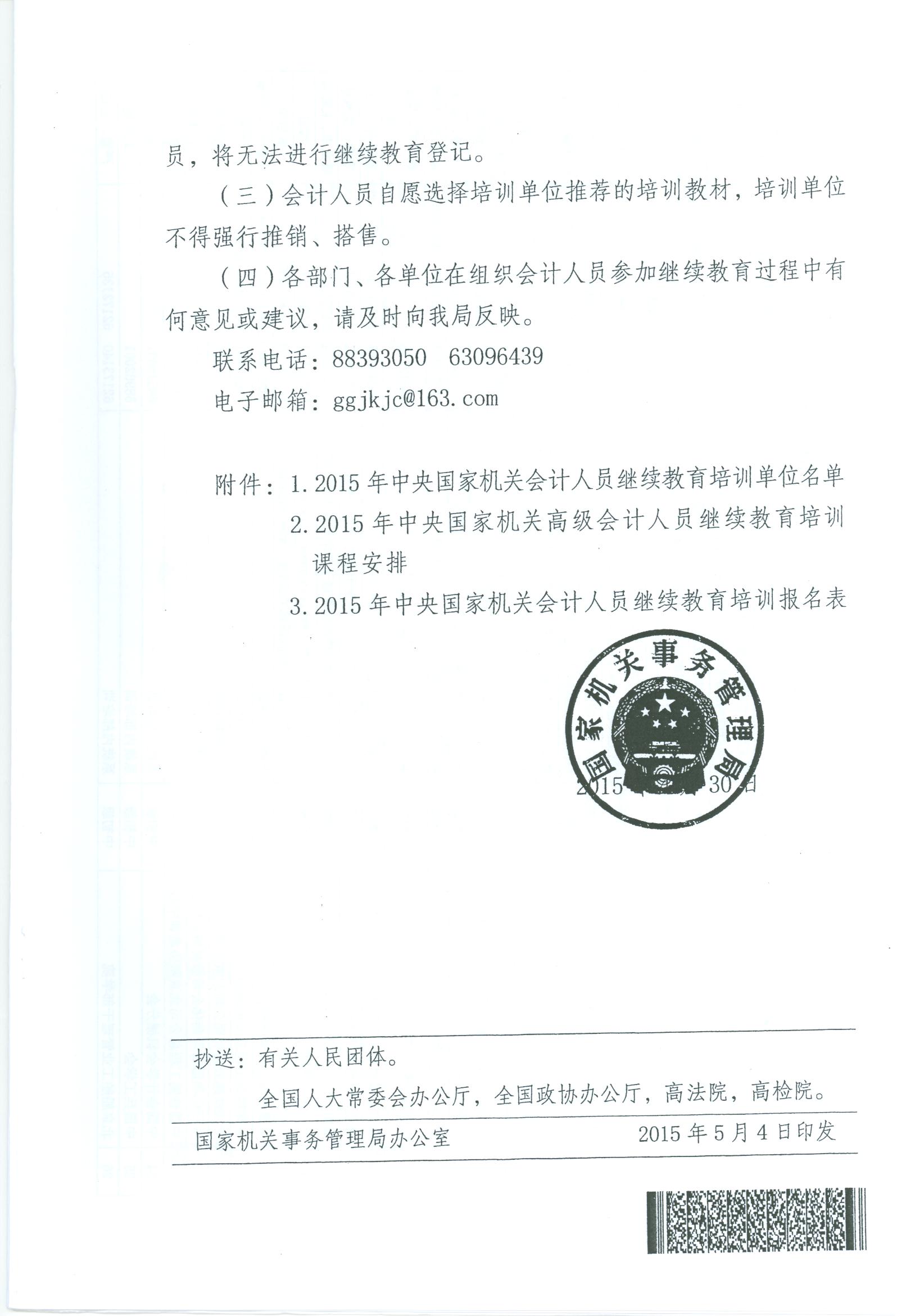 关于转发国管局《关于2015年中央国家机关会计人员继续教育培训有关事项的通知》的通知