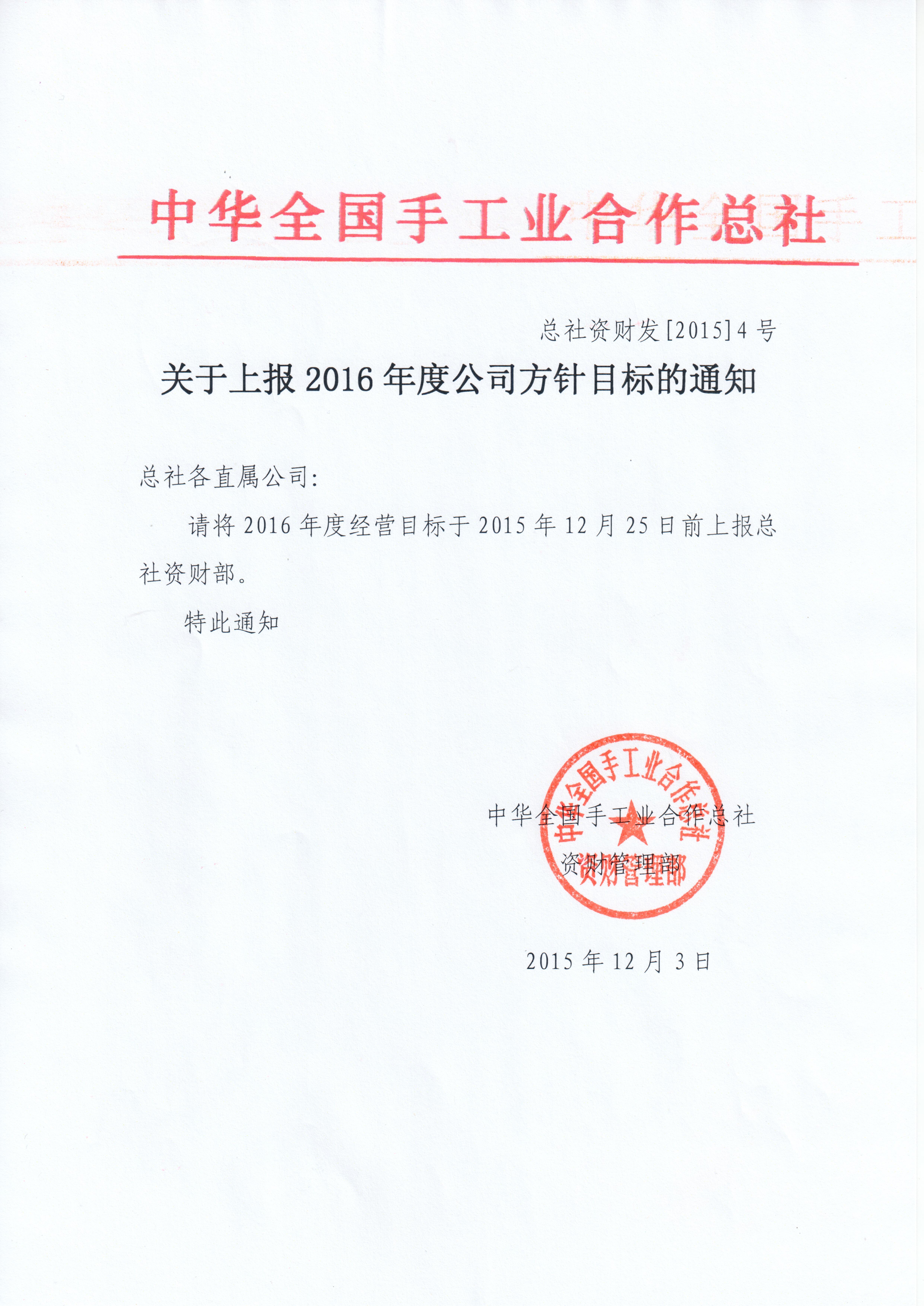 关于上报2016年度公司方针目标的通知