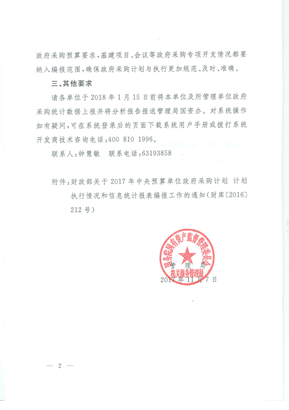 关于转发国资委《关于2017年度中央预算单位政府采购计划和执行情况及信息统计编报工作的通知》的通知