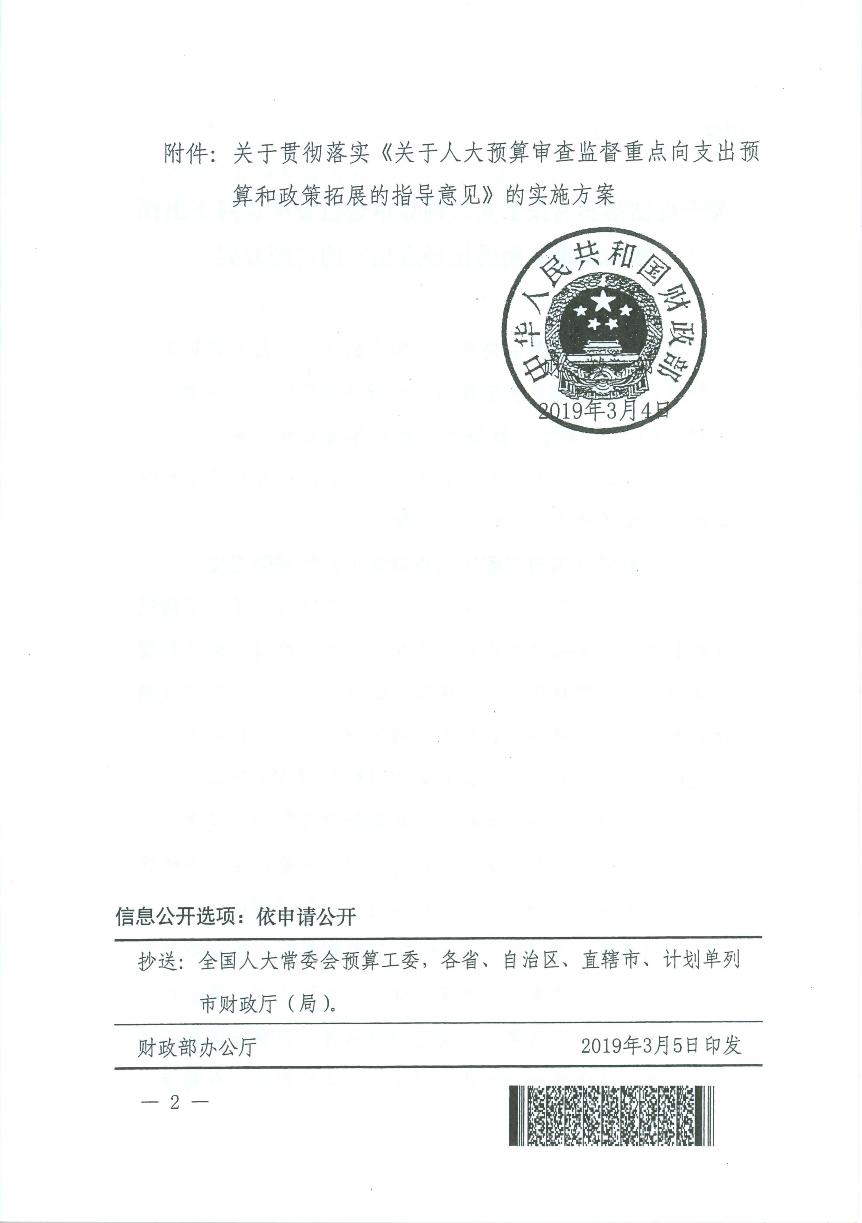关于转发《财政部关于印发<关于贯彻落实《关于人大预算审查监督重点向支出预算和政策拓展的指导意见》的实施方案>的通知》的通知