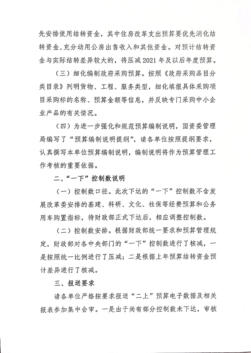 关于下达2021年“一下”预算控制数和编报“二上”预算的通知